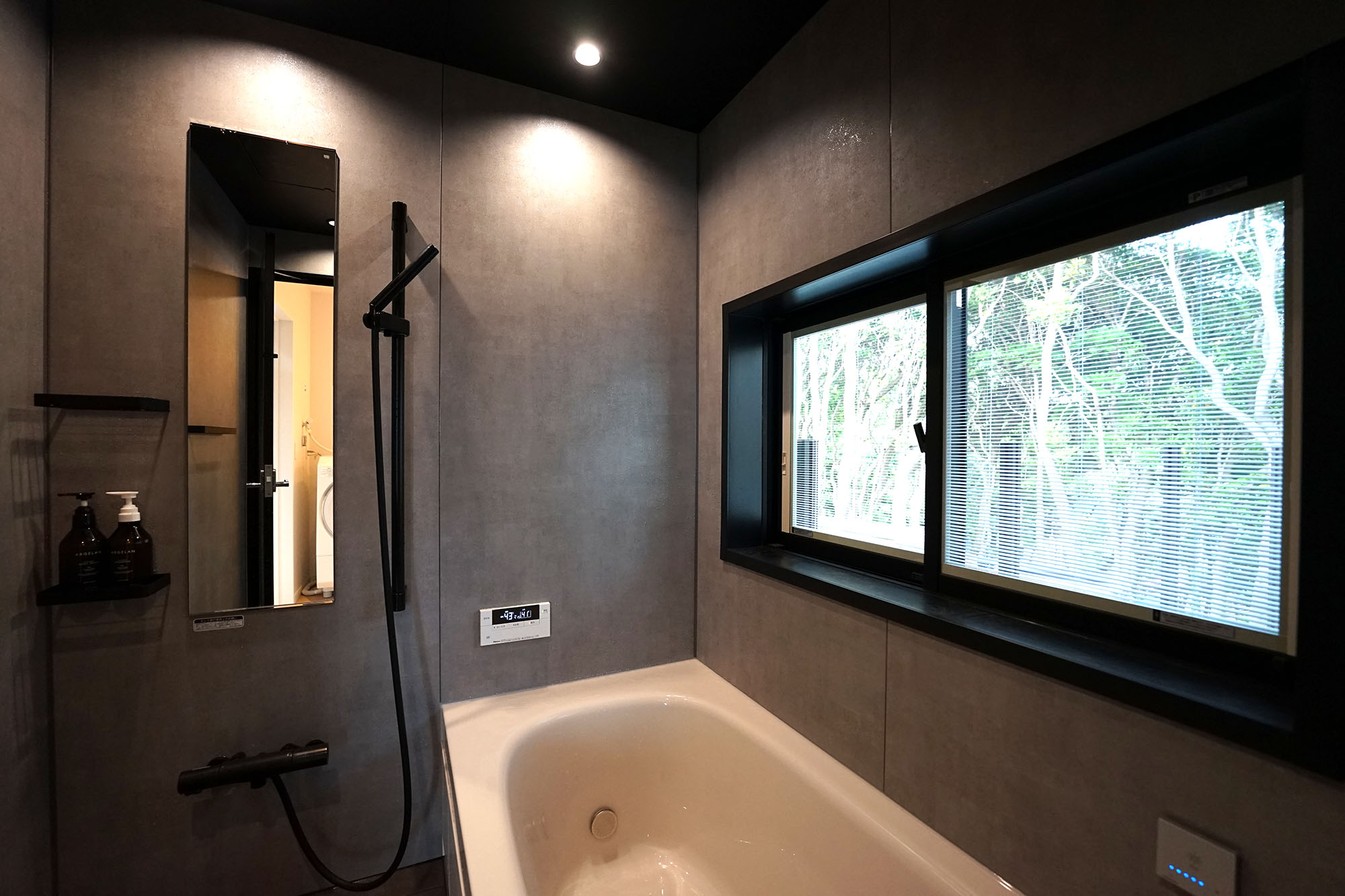 87インチの大画面テレビと高音質のサウンドシステム、シーンに応じて雰囲気を変えられる調光照明も備え、心地よい滞在をサポートします。